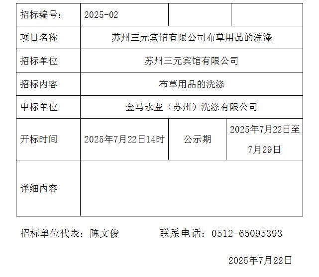 关于开奖记录计划布草用品的洗涤网上发布中标信息