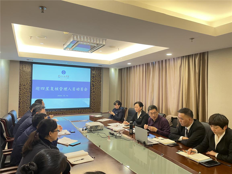 下午两点,宾馆全体管理人员在三楼会议室听取侯书记的调研意见,侯书记要求全体管理人员在迎四星复核过程中做到“坚定信心、严阵以待;严格标准、做细做实;彰显特色、再创辉煌”的二十四字指导方针,切实落实好迎四星复核各项准备工作。宾馆迎四星复核工作已进入倒计时,侯书记的动员给大家指明了方向,鼓舞了干劲,让大家对踢好临门这一脚充满了必胜信心。