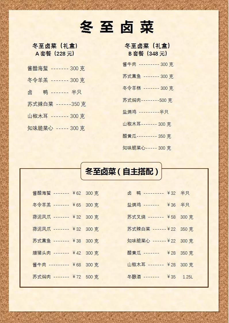 三元宾馆特推出冬至卤菜礼盒(自主搭配)