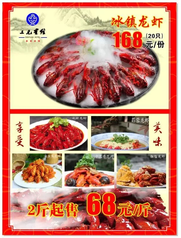 是不是光看着这个名字就要流口水了!!!那就赶快行动吧!现活动优惠,冰镇龙虾168元/份(一份20只),其余五种口味龙虾68元/斤(2斤起售),期待您来品尝哦!