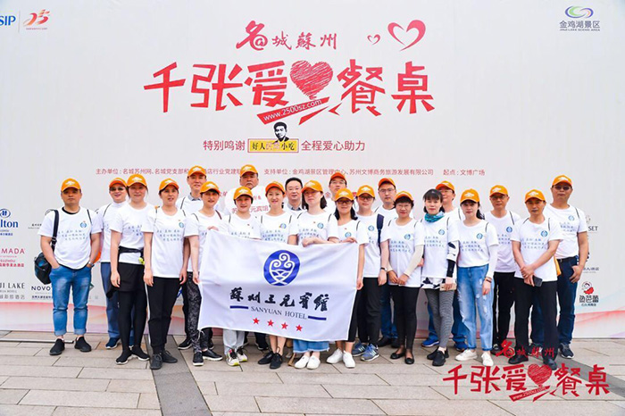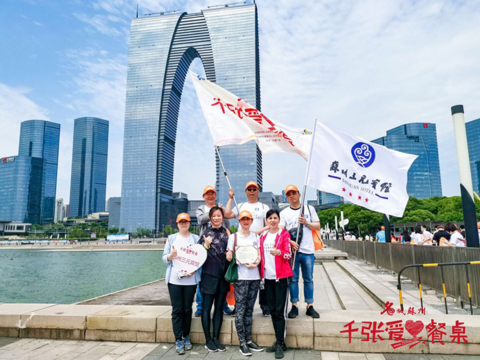 6月2日的早上,三元宾馆(酒店管理系)的全体管理人员和党员们聚集在美丽的金鸡湖畔,参加由名城苏州网、名城苏州党支部和苏州酒店行业党建联合会主办的“千张爱心餐桌”公益健步行活动。