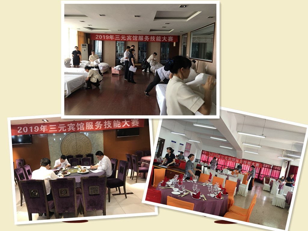宾馆于7、8月份组织各部门开展岗位技能大练兵活动,活动以总经办策划组织执行,制定详细的活动方案,设立以总经理室、各部门经理为成员的岗位技能操作比赛工作小组,活动开展分为7、8月份两个阶段,其中7月份至8月中旬作为技能操练阶段,8月下旬为比赛评审阶段。宾馆各部门于7月中旬将各岗位比赛项目上报总经办,7月底前,根据比赛项目严格制定符合行业操作标准、符合四星级饭店访查规范要求的比赛评审表,交由岗位技能操作比赛工作小组审核确定。此次比赛覆盖面广,涉及宾馆各个部门,比赛项目设立前厅部总台电话预订;客房部会场布置和客房铺床;餐饮部厅面摆台和厨房热菜、点心、刀工技能;营销部客户拜访;工程部修补墙纸和L型打胶;总经办保安灭火器检查、广场停车指挥和消控室火警处置、监控录像查询;财务部帐台收银,目前所有比赛项目已圆满完成,经过考核评审也产生出各个部门岗位的技能能手。