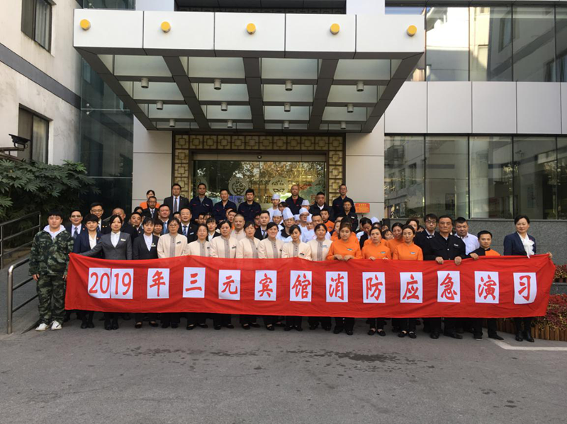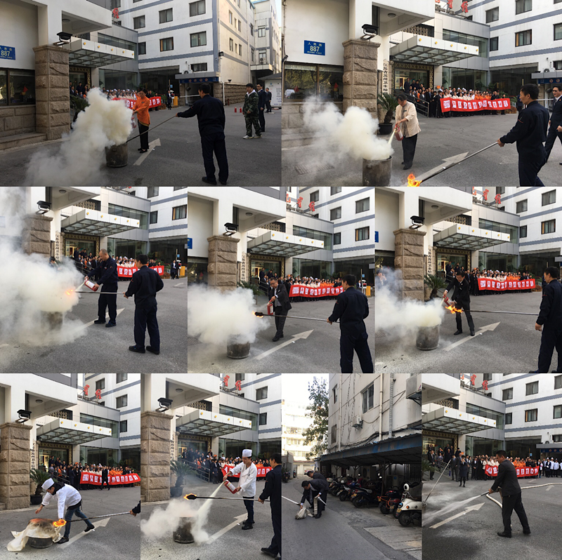 今年苏州自入秋以来,少雨且温度居高不下,虽然气候舒适,景色怡人,但是天干物燥,极易引发火灾事故。今年的消防安全形势不容乐观,国内外发生多起火灾事件,造成重大的财产损失和人员伤亡。11月14日下午,三元宾馆为有效防范和化解消防安全风险,切实提高宾馆全体员工的消防安全意识和应急疏散能力,年度的消防应急演习在一阵阵的警报声中拉开帷幕。报警后两名保安迅速赶到四楼客区模拟着火点扑灭火源,客房、餐饮等区域的员工在义务消防员的统一指挥下一边通知客人一边分别从不同的疏散通道组织疏散到宾馆广场。通过这样火场逃生的模拟演练,使员工们更加实际掌握疏散的各种要领和技巧,更加具有实战经验。疏散演习结束后,大家聚集到宾馆广场上进行消防器材的操作演练,广场上一只大铁桶里燃烧着熊熊烈火,供大家练习使用干粉灭火器灭火,模拟油锅着火,练习使用灭火毯灭火,义务消防员进行消火栓灭火操作练习,员工们积极参与,都非常珍惜实际操作的机会。