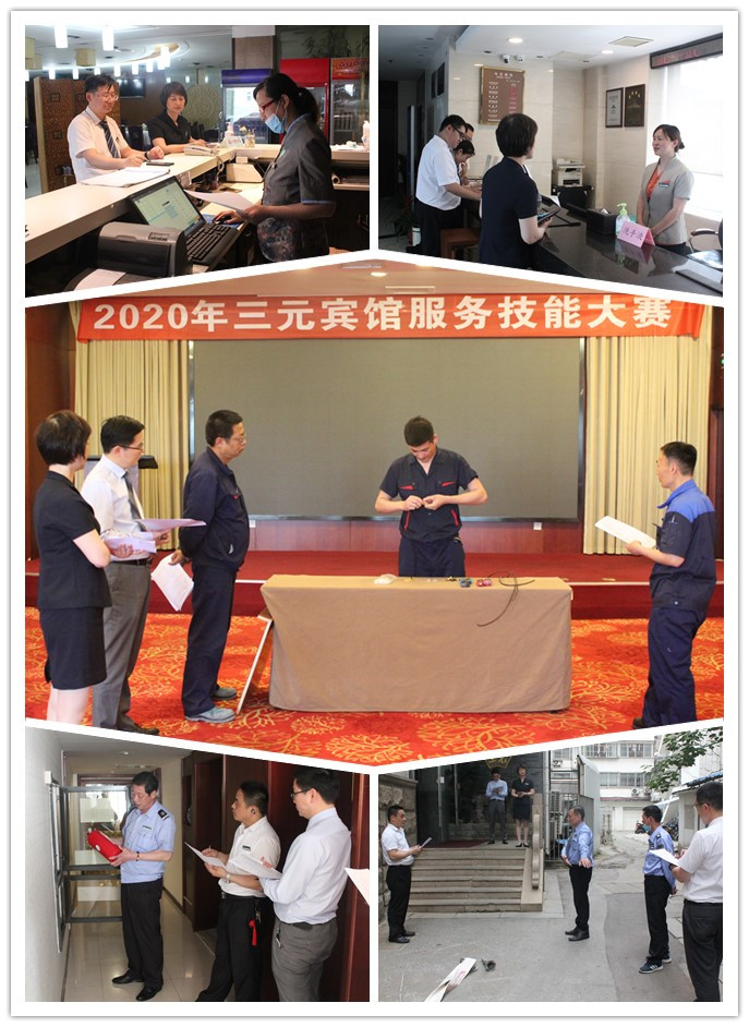 2020年年初,随着一场新冠病毒肺炎疫情的爆发,给全国经济形势带来严重的影响,旅游酒店行业更是重灾区,复工复业后举步艰难。三元宾馆自疫情开始,一段时间暂停营业,员工休息在家,造成经营停滞。从三月份复工以来,受大环境影响,在经营上只能以守业为主,客源少,服务人员提供的服务就相应减少,服务技能水平就会受到影响。“宝剑锋从磨砺出”,剑要常磨,服务技能要常操练,为了保障后续宾馆各岗位的服务质量水平,切实落实今年的全员培训考核工作,同时也为明年宾馆四星复核做好准备,宾馆总经办于4、5月份组织宾馆各部门开展岗位技能大练兵活动,活动成立以总经理室、各部门经理为成员的岗位技能操作比赛工作小组,分为准备、技能操练、比赛评审三个阶段进行。