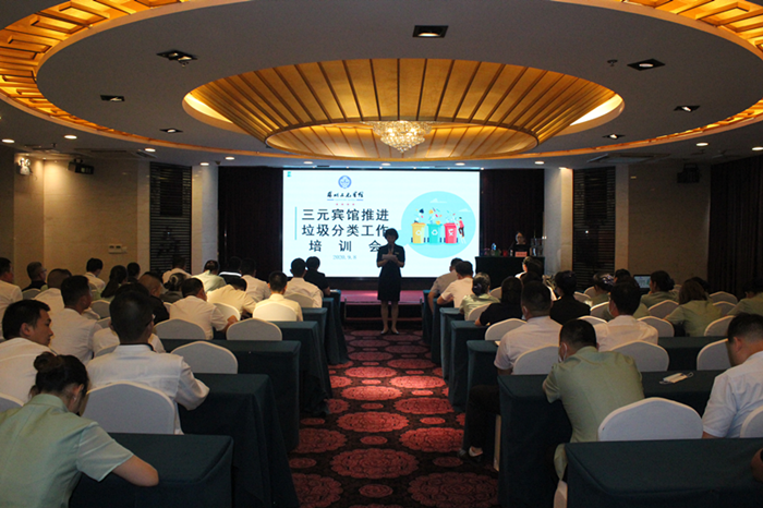 为进一步增强员工的垃圾分类意识,提升垃圾分类工作水平,根据苏州市文化广电旅游局和苏州市生活垃圾分类工作领导小组办公室联合发出“关于推进苏州市旅馆业垃圾分类工作的通知”精神,9月8日下午,三元宾馆在四楼多功能厅召开“三元宾馆推进垃圾分类工作培训会”,宾馆80余名员工参加了此次培训会。