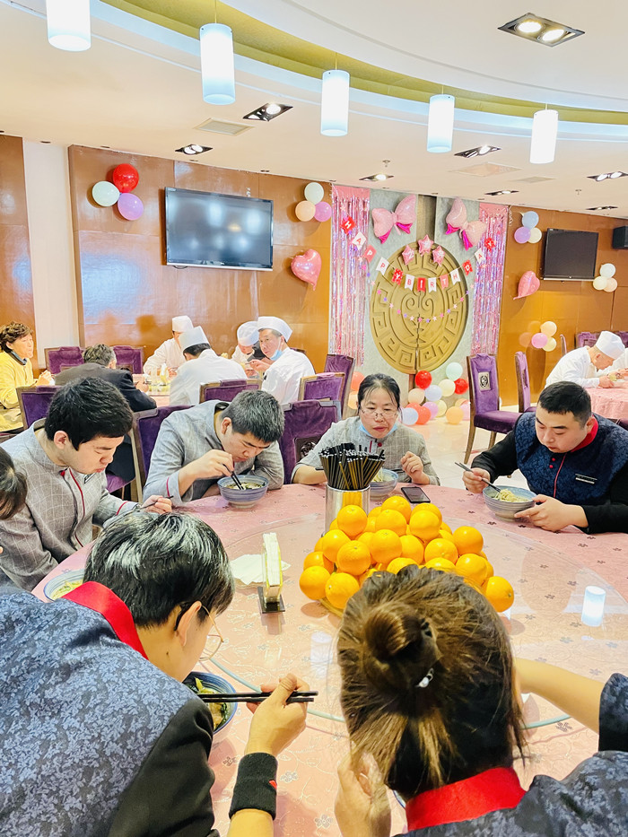 光阴荏苒,岁月如梭,伴随着冬阳艳阳,11月18日三元宾馆23岁啦! 二十多年来宾馆始终坚持宾客至上的服务宗旨和以人为本的经营理念,不断深化改革,拓展市场,锐意进取,勇闯难关,三元人兢兢业业努力工作。今年因新冠疫情影响,宾馆的经营受到严峻考验,面对困难三元人团结凝聚,齐心协力,共克时艰。为提高宾馆凝聚力,增强员工归属感,进一步推动宾馆企业文化建设,形成良好的向心力和凝聚力,让每位员工切实感受到宾馆这个大家庭的温暖。11月18日,宾馆餐饮部精心为每位员工在餐厅准备了美味的生日面。员工们围坐在一起,大家谈笑风生开心的回忆着宾馆的历历往事,以朴素简洁的形式共同庆贺宾馆开业23周年。