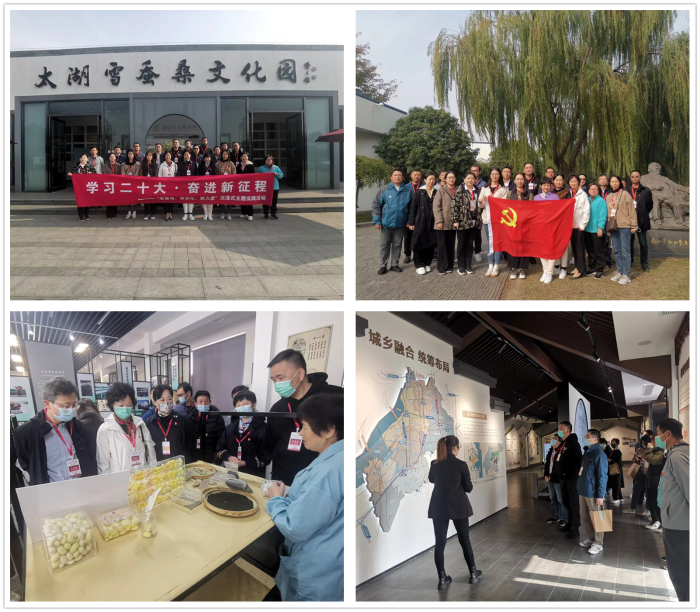按照实践活动路线安排,上午第一站来到了太湖雪桑蚕文化园,参观了丝绸制造产业链的演变和发展历程,亲身感受吴地人民用一根蚕丝织实现乡村振兴富民梦。接着,参观了吴江区乡村振兴展示馆,学习特色田园乡村体系建设发展历程,深度领会乡村振兴的内生动力。最后,参观了吴江区震泽诚信乡镇,品读耕读文化,了解田园情怀。
