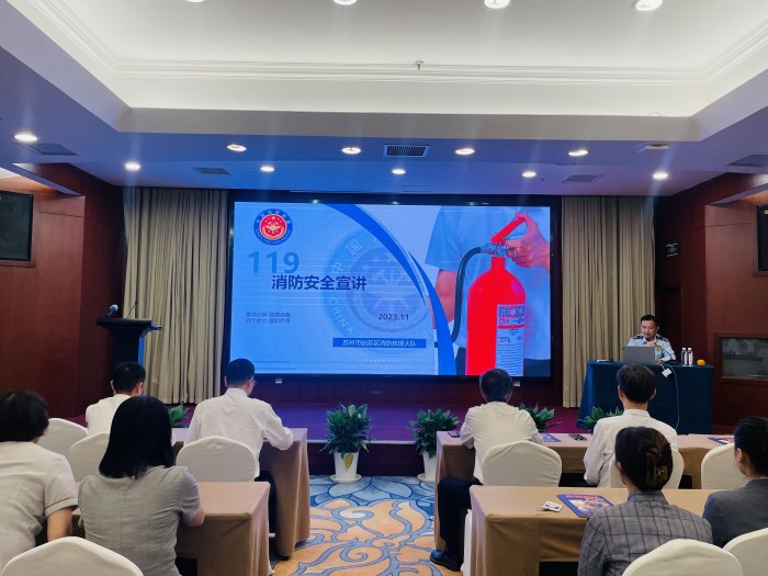 今年11月是全国第32个消防宣传月,主题为“预防为主 生命至上”。为提高全体员工的消防意识和应急技能,熟悉宾馆疏散应急程序,提高员工对突发事件的处理能力和各部门协调配合作战能力,确保在突发火灾事故时,能够高效、有序地进行疏散、抢险、救援处理。11月2日下午,三元宾馆有限公司特邀姑苏区消防救援大队余军副大队长为全体员工开展一场消防安全知识宣讲。